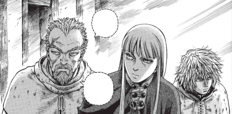 In Gainsborough, King Sweyn and Floki receive word that Canute has survived and is on his way, Thorkell now his loyal servant. Floki believes that is impossible and that it is a plot of Thorkell's; he readies his men. Floki is surprised when Canute comes back, now a commanding presence, with not only Thorkell at his side but also Askeladd. Askeladd assists Bjorn in settling into the room Canute procured him and they agree to see each other the next day. Canute tells his retinue they must wait to act, since he has little support now and would be branded a rebel if he acted against King Sweyn. He instructs Thorkell, who is charismatic, to go gain the minority chieftains' favour. He asks Askeladd for his opinion on their plan; Askeladd says assassination is their best route in the short term, as Canute would automatically command the forces in England with his brother Prince Harald far away, but that they would have to pin the deed on an officer, preferably a powerful one. Canute says it is unforgivable for God to watch them suffer and do nothing, and that he will take the first step needed to create a Paradise on Earth. At King Sweyn's hold, King Sweyn beckons Canute forward, but Askeladd holds him back. He and Thorfinn observe there are about twenty men ready to ambush them, including archers above. Canute tells them to keep their swords sheathed no matter what happens, as this is the sort of fight where the first to draw his sword loses.